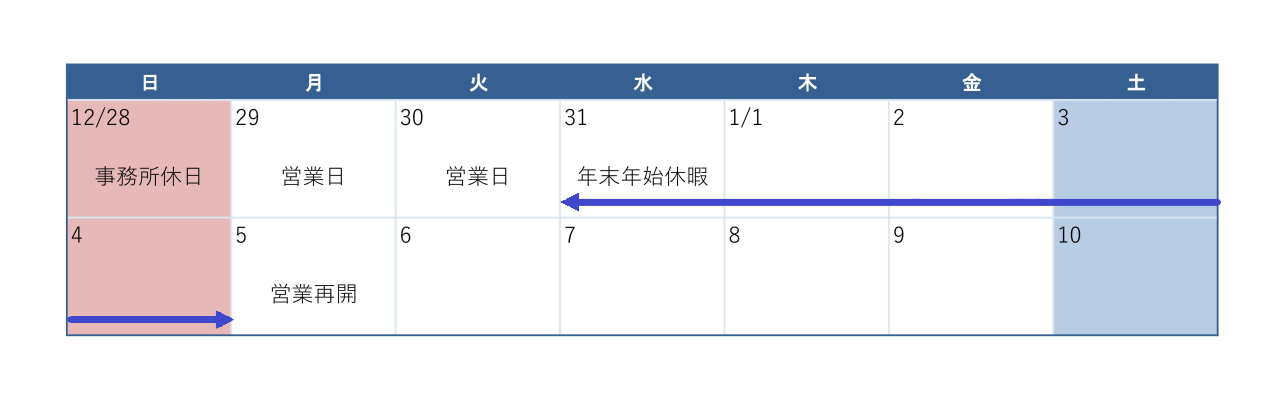 令和7年12月31日水曜日~令和8年1月4日日曜日まで休業とさせていただきます。